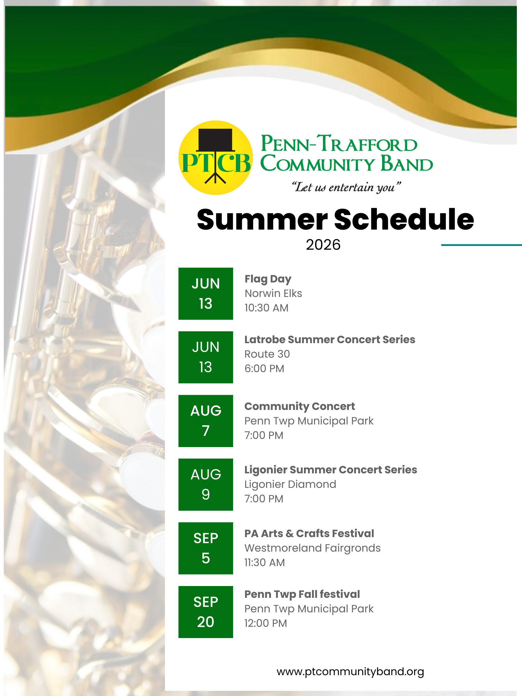 The Penn-Trafford Community Band is a local ensemble that performs throughout Westmoreland County